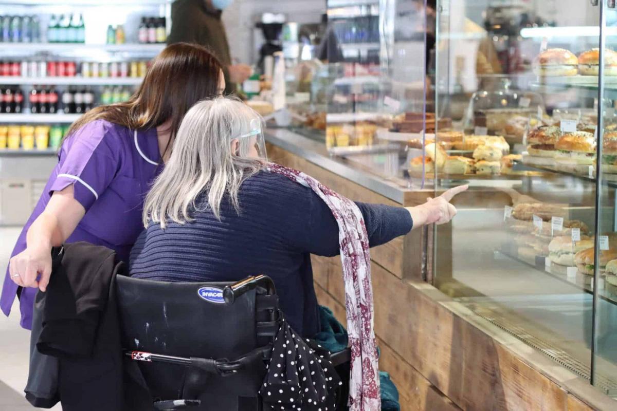 -îngrijitoarea merge la cumpăraturi împreună cu seniorul care îşi doreşte să participe şi să-si păstreze autonomia